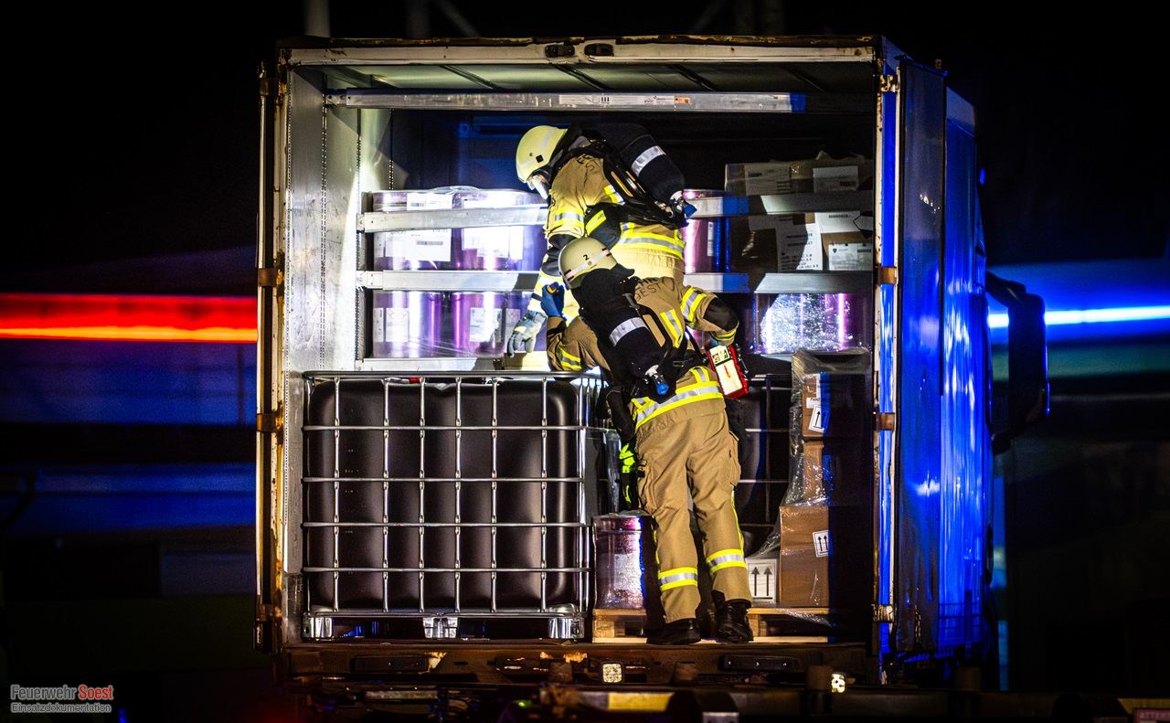 An dem entladenen Stückgut sowie der Ladefläche des LKW konnte kein austretender Gefahrstoff festgestellt werden. Es waren keine weiteren Maßnahmen erforderlich.