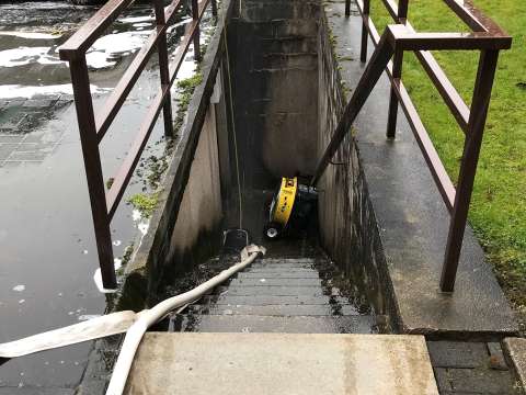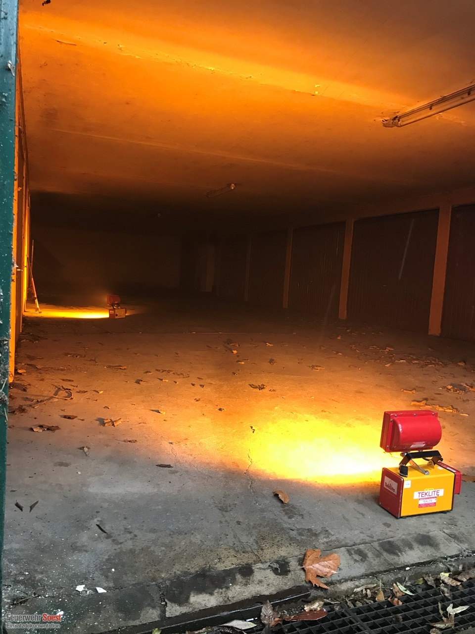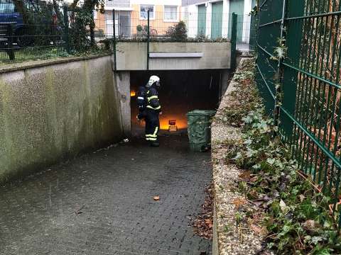 In einer Tiefgarage brannten gelbe Säcke. Die Feuerwehr ging mit einem C-Rohr vor, anschließend wurde die Tiefgarage mit einem Großraumlüfter gelüftet.